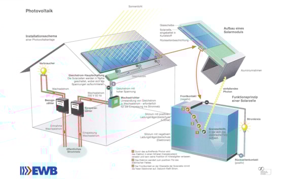 Photovoltaik bedeutet die Umwandlung von Sonnenenergie in elektrischen Strom. Die Umwandlung erfolgt ohne Verschleiss, lautlos und emissionsfrei. Mit einer PV- Anlage gewinnen Sie ein Stück mehr Unabhängigkeit gegenüber den herkömmlichen Energieträgern wie Erdöl, Erdgas und Kohle.